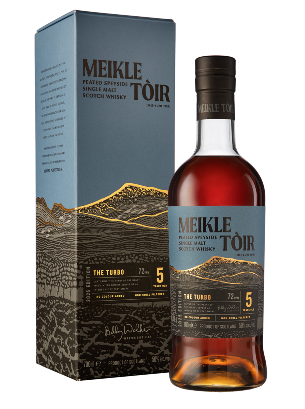 Taking ‘the heart of the heart’ of our distillate –the spirit cut which contains the highest phenol content –‘The Turbo’ entails an amplified smoky identity. Deploying mainland peat and a lengthy fermentation period, the whisky boasts full-bodied character. The 2025 Release is a combination of five American virgin oak casks and four Oloroso hogsheads. The result is a multifaceted whisky with a powerful punch of peat, hitting a hefty 72 PPM.